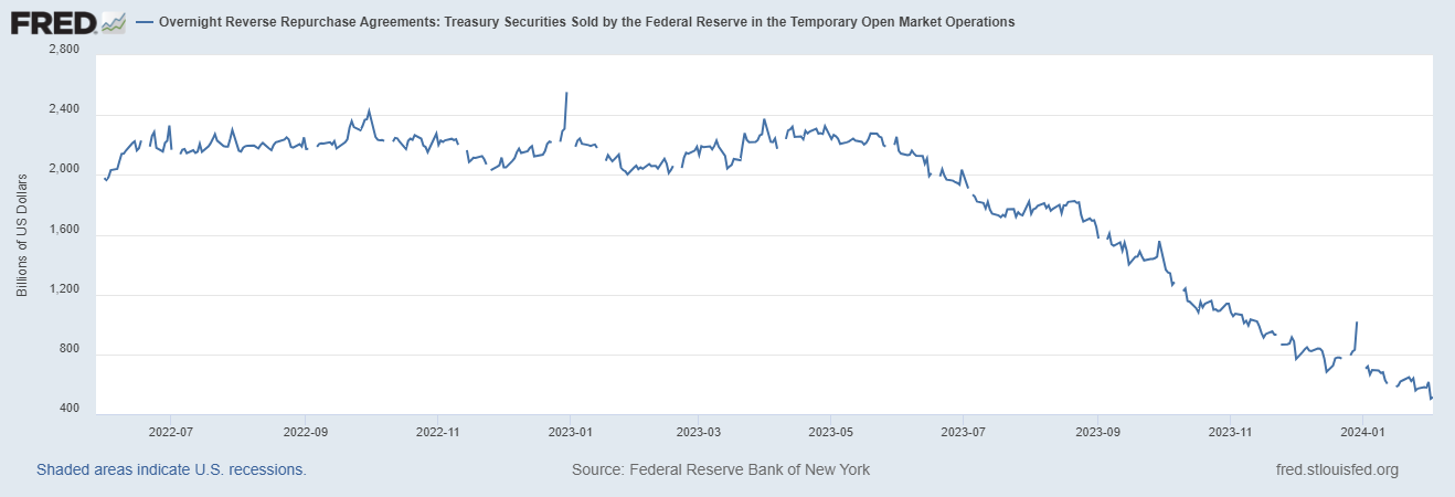 La instalación de Repo Inverso experimentó una mayor reducción de liquidez, probando hasta $500 mil millones restantes..