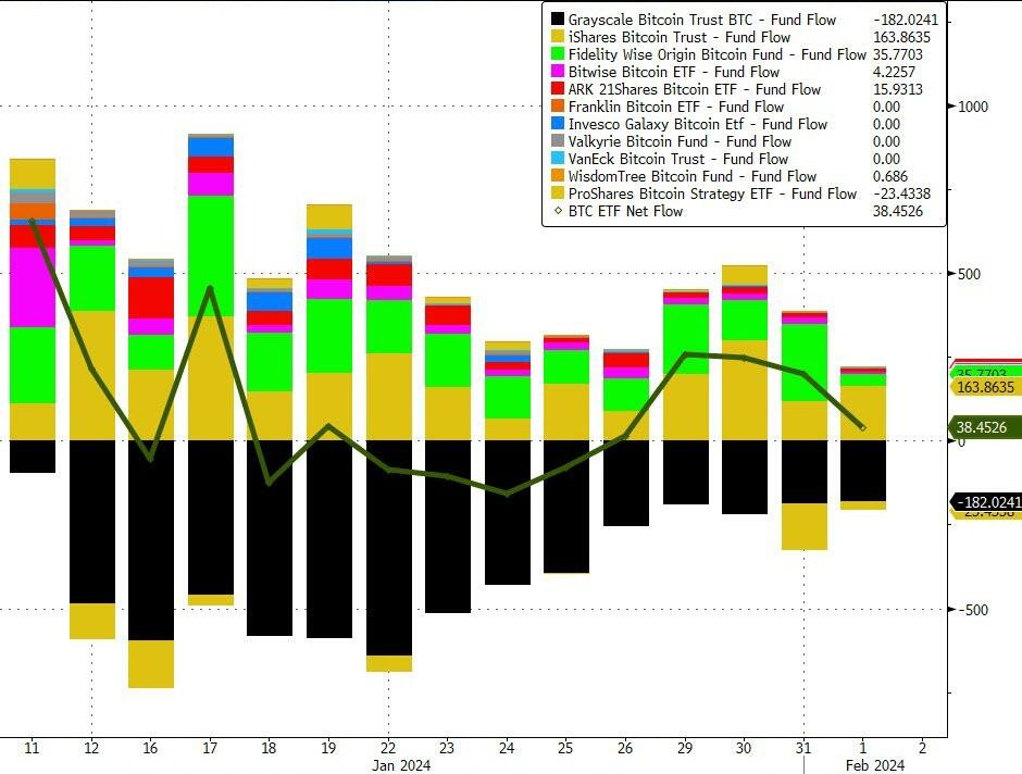Por último, ya unas semanas tras el lanzamiento del ETF de Bitcoin, parece que en la última semana se han registrado entradas netas: