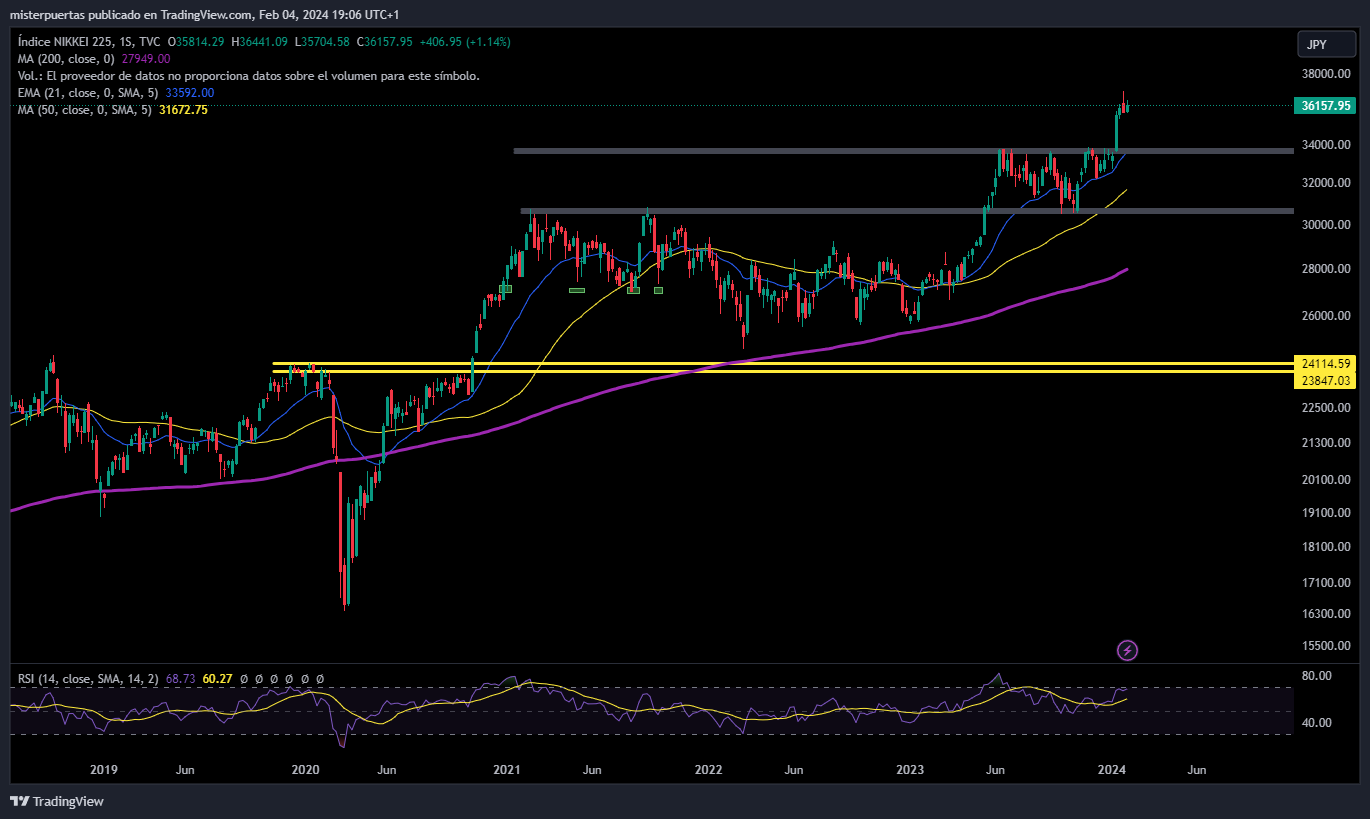 El mejor activo en enero de 2024 fue el Nikkei japones, mientras que el peor, el Hang Seng chino.