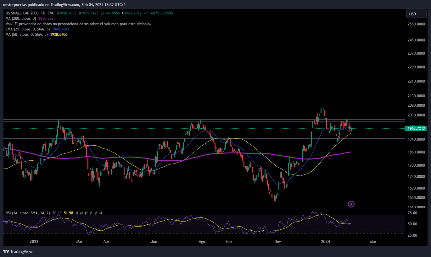 La narrativa que lideró la semana de tipos altos por más tiempo afectó especialmente a las compañías más pequeñas, el Russell 2000 cerró una nueva semana a la baja. Todavía a más de un 5% de máximos de diciembre y a más de un 20% de máximos históricos: