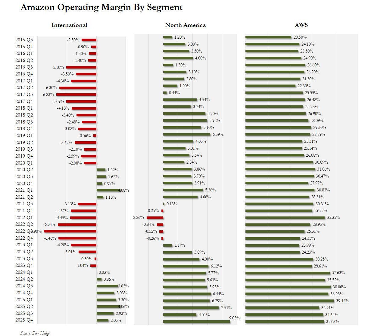 Aunque el crecimiento de AWS fue sólido, igualmente impresionante fue que el margen del segmento aumentó del 34,64% en Q3 al 35,03%, ligeramente por encima de la estimación mediana de Wall Street del 35%.
