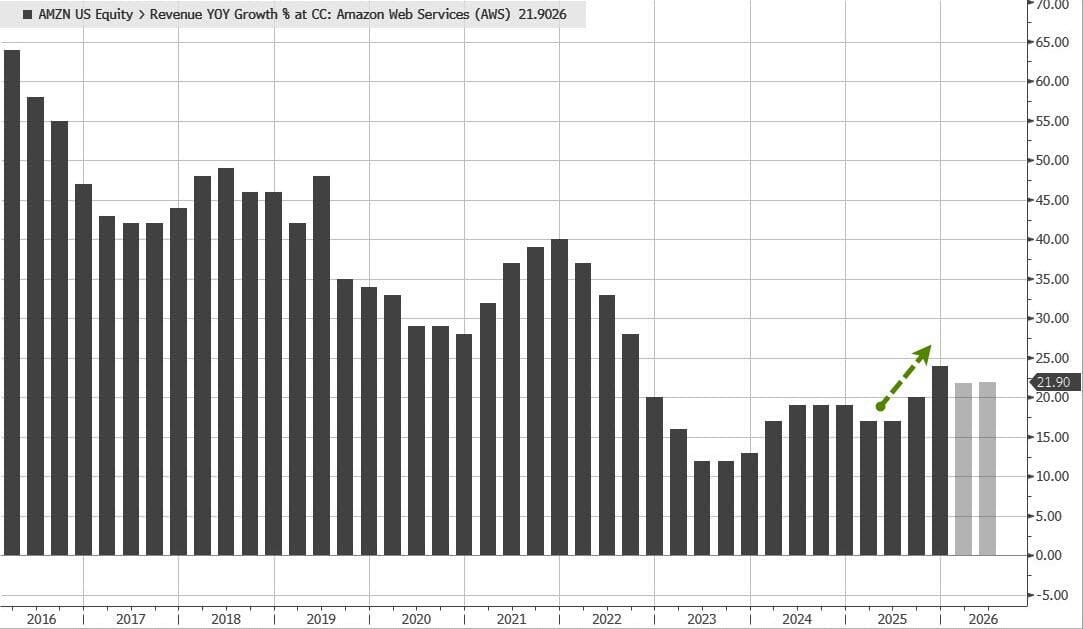 Fue una cifra impresionante, ya que el aumento interanual del 24% en ingresos de AWS no solo superó ampliamente las estimaciones, sino que fue el más alto en tres años.