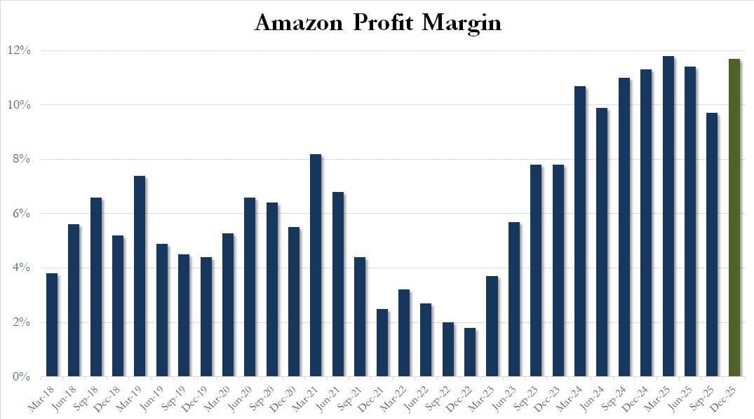 Como resultado del descenso en los beneficios de AWS, el margen operativo consolidado de Amazon registró un salto notable y en Q4 aumentó del 9,7% al 11,7%, rozando máximos históricos.