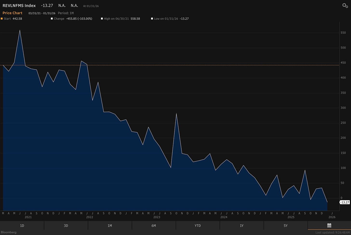 Las nóminas no agrícolas cayeron en 13.270 en enero, según Revelio Labs (empresa de análisis de datos laborales especializada en empleo, talento y mercado de trabajo.), lo que supone el mayor descenso en al menos cinco años.