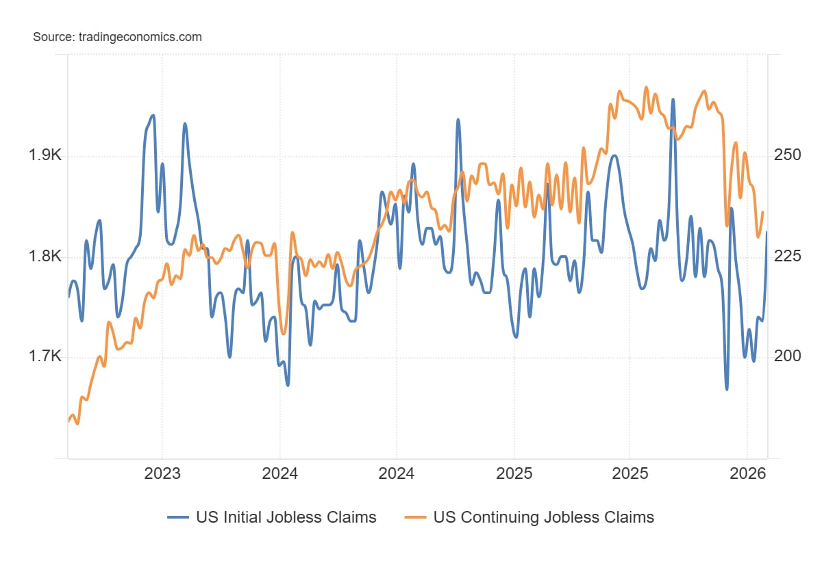 Las solicitudes iniciales de subsidio por desempleo en Estados Unidos aumentaron en 22.000 respecto a la semana anterior, hasta 231.000 en la última semana de enero, muy por encima de las expectativas del mercado, que apuntaban a 212.000, lo que supone el nivel más alto de solicitudes iniciales en casi dos meses. En la misma línea, las solicitudes continuadas aumentaron en 25.000, hasta 1.844.000, después de haber caído a mediados de mes a su nivel más bajo desde septiembre de 2024.