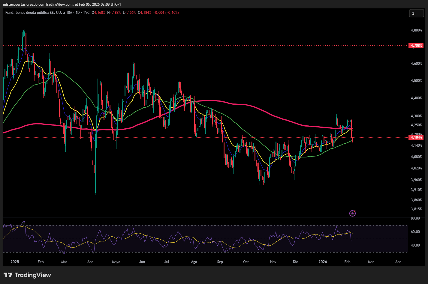 Fue la mayor caída diaria del rendimiento a 10 años desde noviembre de 2025. Hoy los bonos actuaron como refugio.