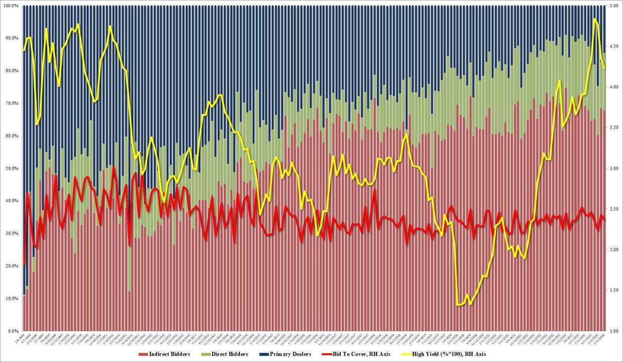 7- La subasta a 30 años fue bien: - Los Indirectos adjudicados en un 67,8% - Los Directos adjudicados en un 17,7% - Los Dealersse quedaron con el 14,5%, la menor desde agosto de 2023.