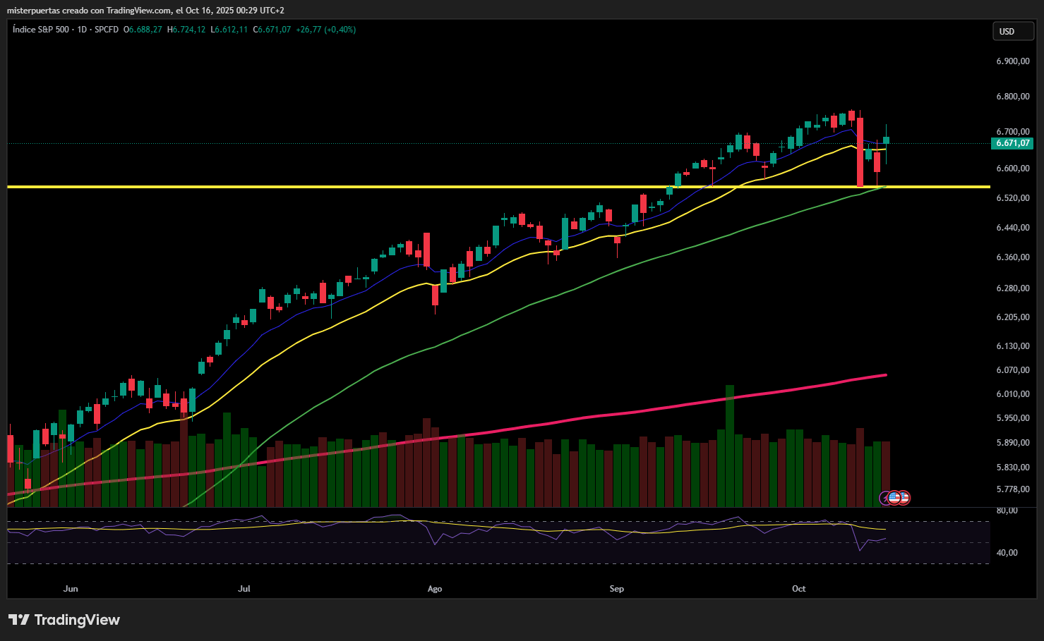 (Mayor presión vendedora por debajo de 6580 puntos y aún más por debajo de los 6500)