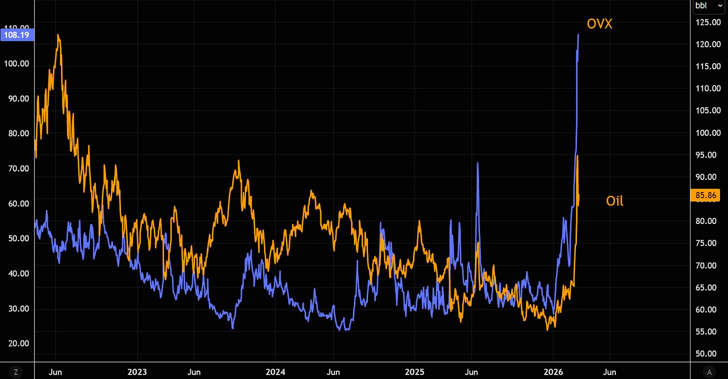 La volatilidad del petróleo —un indicador sólido del riesgo geopolítico— volvió a repuntar y se situó cerca de los máximos alcanzados en la noche del domingo.