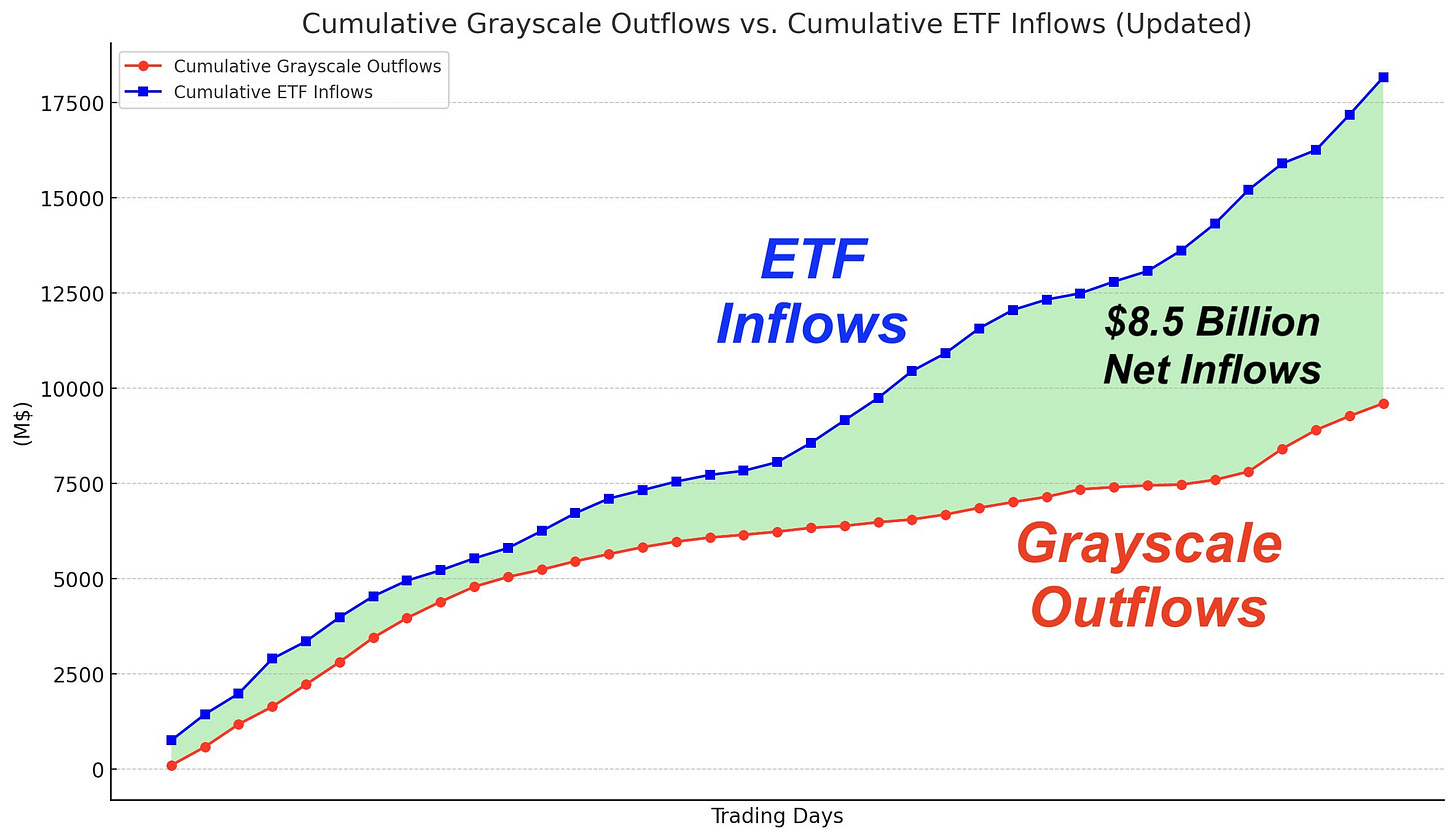 1- 8.500 MILLONES de dólares de entradas netas en ETFs de Bitcoin.