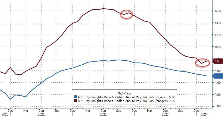 Los aumentos salariales de los que cambian de empleo se aceleraron por primera vez en más de un año, pasando del 7,2% al 7,6%.