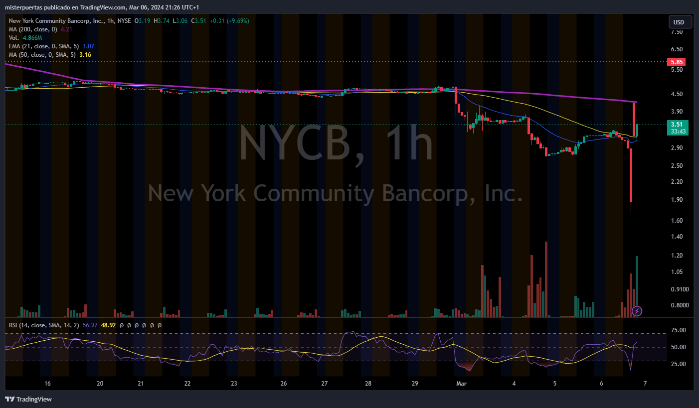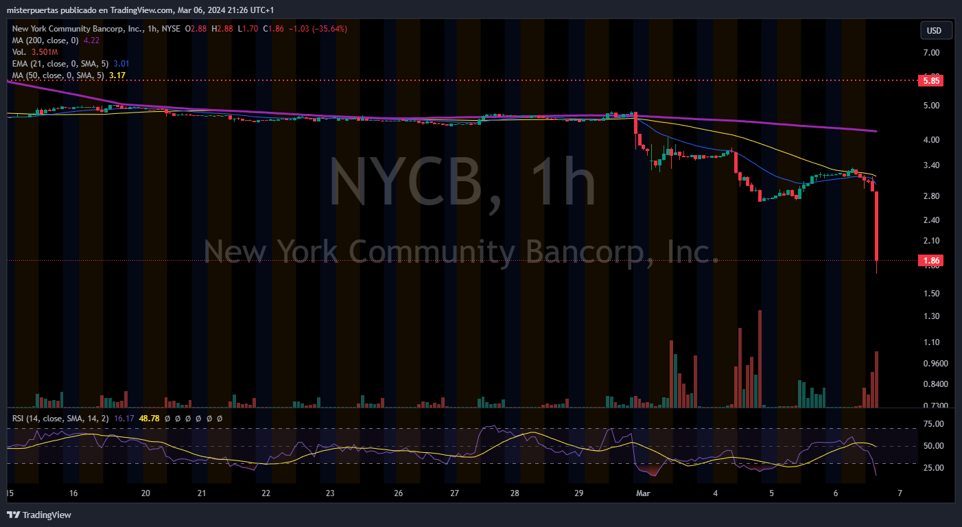 Las acciones de New York Community Bancorp (NYCB) cayeron un 40% y llegaron a detenerse después de un informe de WSJ que decía lo siguiente: