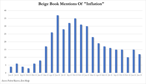Finalmente, adoptando un enfoque visual de los datos, encontramos que después de que las menciones sobre la inflación cayeron a 10, o el nivel más bajo desde enero de 2022 en noviembre, antes de repuntar en enero a 15, en marzo el número de menciones volvió a caer, esta vez a 12, lo que sugiere que es posible que los precios estén reanudando su caída.