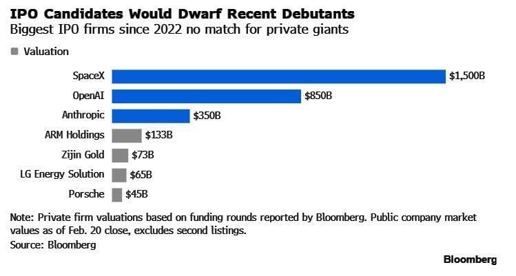 Por el lado de la oferta, Goldman estima que los ingresos de IPOs en EE.UU. podrían alcanzar los 160.000 millones de dólares en 2026, con escenarios que van desde 80.000 hasta 200.000 millones dependiendo de si nombres como OpenAI, Anthropic o SpaceX salen a bolsa. Si esas tres megaempresas llegan al mercado al mismo tiempo, el mercado tendría que absorber una oleada de acciones nuevas justo cuando los mayores compradores institucionales están más ocupados invirtiendo en CAPEX que en recompras.