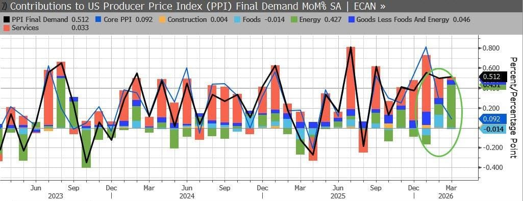 Los precios al productor en Estados Unidos aumentaron un 0,5% mensual en marzo de 2026, igualando el crecimiento del periodo anterior y quedando por debajo de las expectativas del mercado, que apuntaban a un 1,1%.