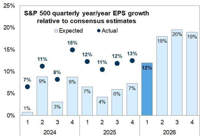 Fíjense en el contexto de partida: el consenso espera un crecimiento de beneficios por acción del +12% interanual respecto al primer trimestre de 2026, el más alto desde 2021.
