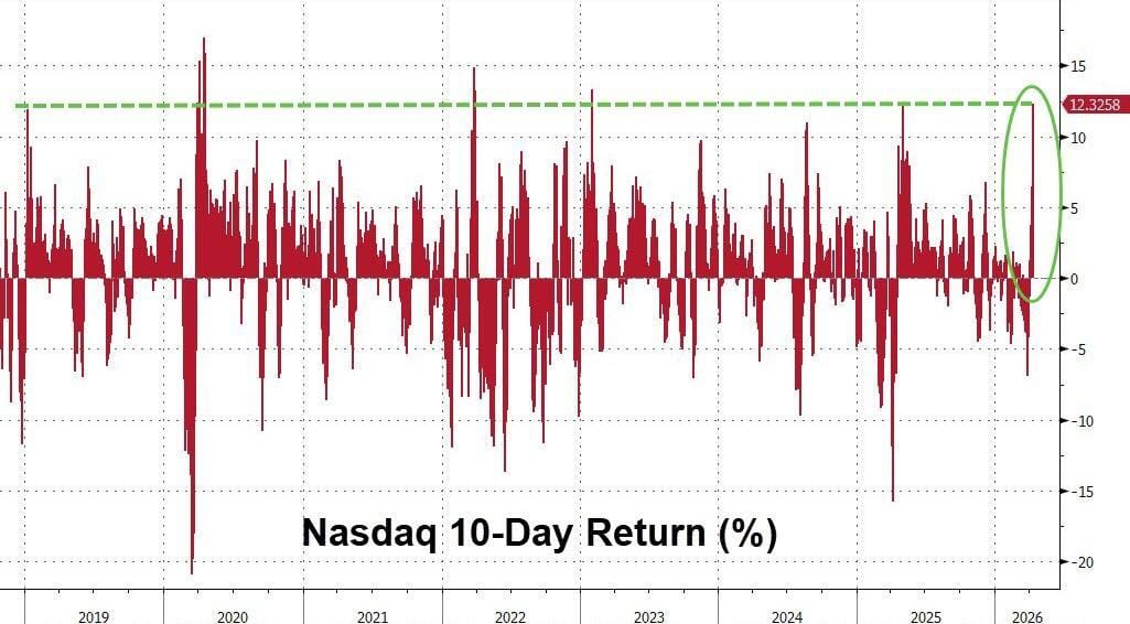 Los 10 días de un desempeño imparable en el Nasdaq lo han impulsado más del 12%, uno de los repuntes más rápidos de la historia...