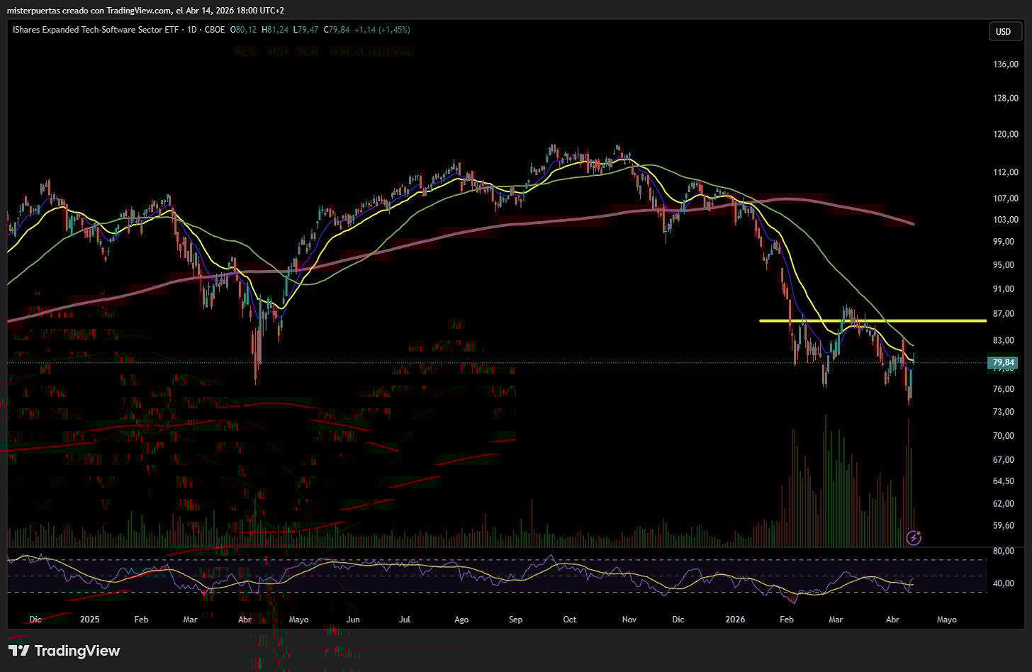 Quizás lo más reseñable del día fue que el impulso del software se desvaneció a medida que el resto del mercado aceleraba. Los informes sobre el lanzamiento de un nuevo modelo Claude (4.7) de Anthropic, diseñado como una “herramienta de diseño de IA”, han intensificado la narrativa de que la IA está revolucionando el SaaS y erosionando su modelo de negocio, lo que provocó caídas significativas en compañías como FIG y ADBE.
