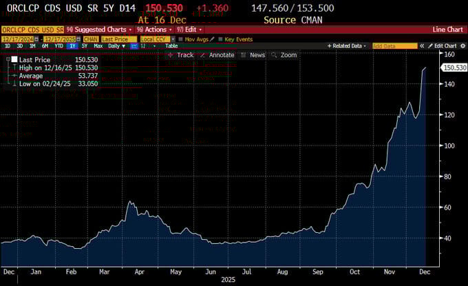 Oracle es un desastre: ha vuelto a sus niveles más bajos desde mediados de junio (por debajo de su media móvil de 200 días), mientras sus diferenciales de crédito se disparan a niveles propios de la crisis financiera global.