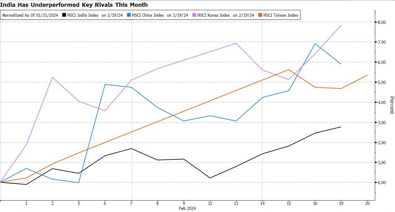 Recientemente, Citigroup y Societe Generale SA han rebajado la calificación de India, mientras que los extranjeros han vendido un total neto de 3.800 millones de dólares en acciones locales en lo que va del año, la cifra más alta en Asia emergente fuera de China. Los inversores en activos múltiples están prefiriendo los bonos en rupias a las acciones de la nación del sur de Asia, y algunos incluso refutan las observaciones de Goldman, diciendo que los flujos de dinero que salen de China pueden estar desacelerándose a medida que el país intensifica sus esfuerzos de rescate del mercado.
