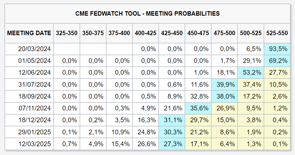 Mientras que las probabilidades de recortes de tipos de interés en marzo cayeron por debajo del 7% y para mayo, por debajo del 30%.