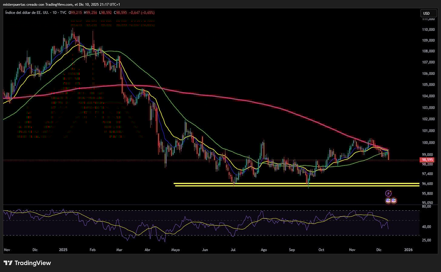 En el comunicado... La Fed eliminó la referencia al fin del QT y añadió que las reservas han caído a niveles bajos, por lo que comienza compras de T-bills por 40.000 M$/mes para mantener liquidez, a partir del 12 de diciembre.
