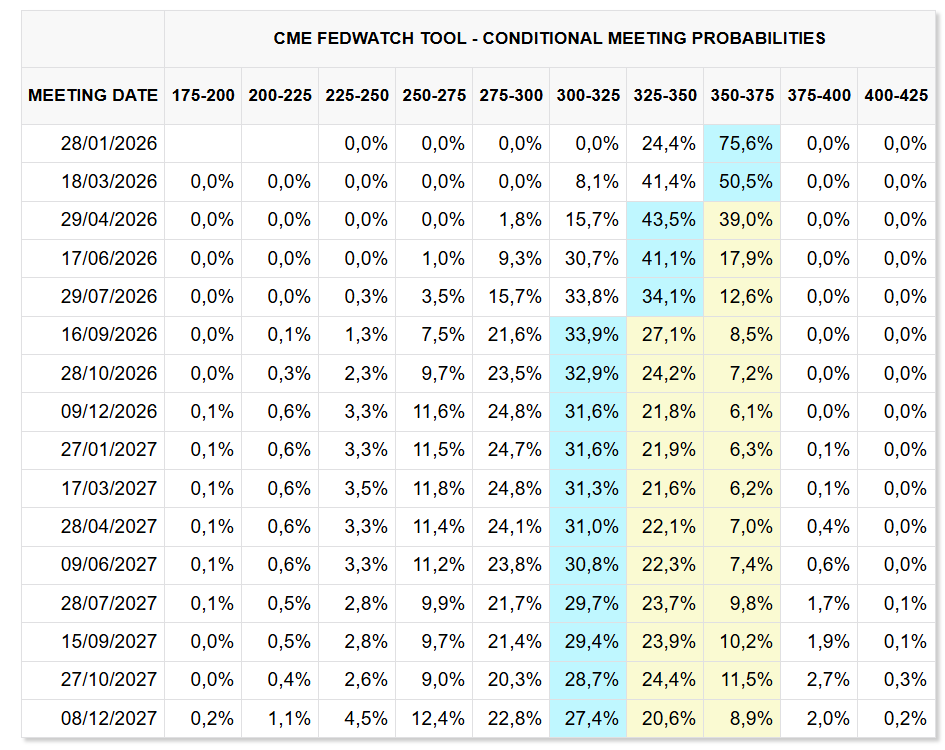 Eso hizo que las probabilidades de bajadas de tipos para el primer trimestre de 2026 han aumentado hasta el 40%: