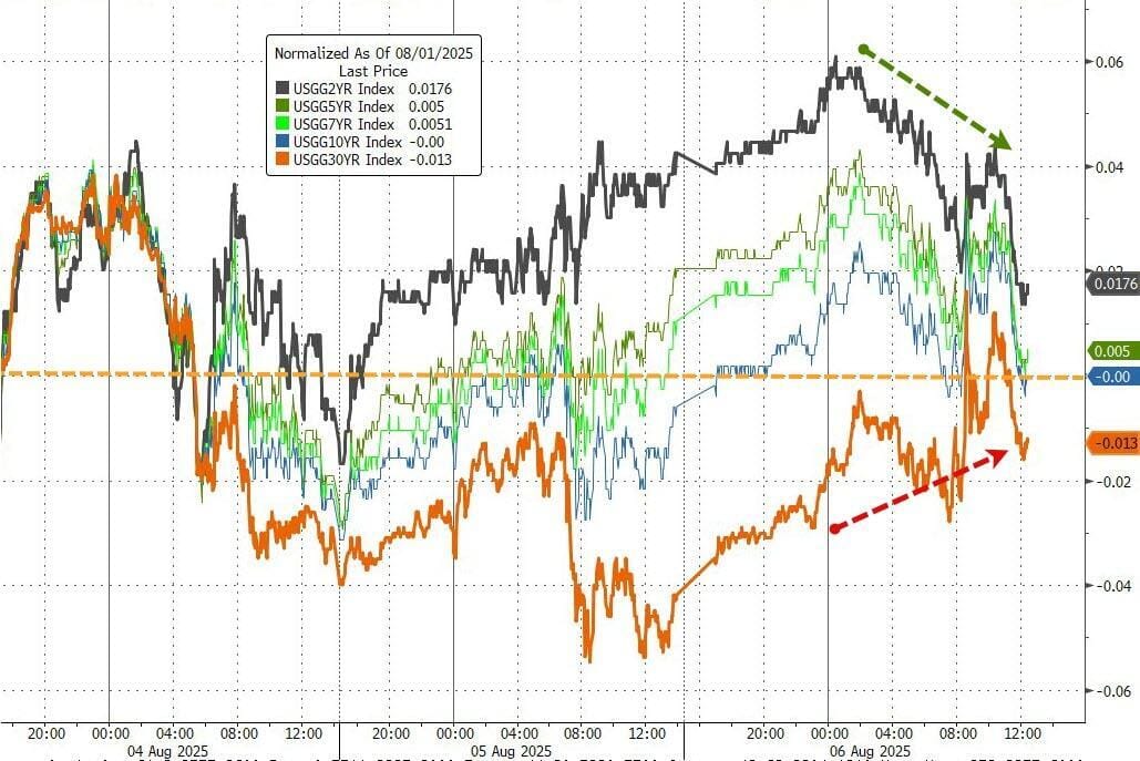 Hubo un pico intradía que afectó especialmente al tramo largo, tras una débil subasta a 10 años.