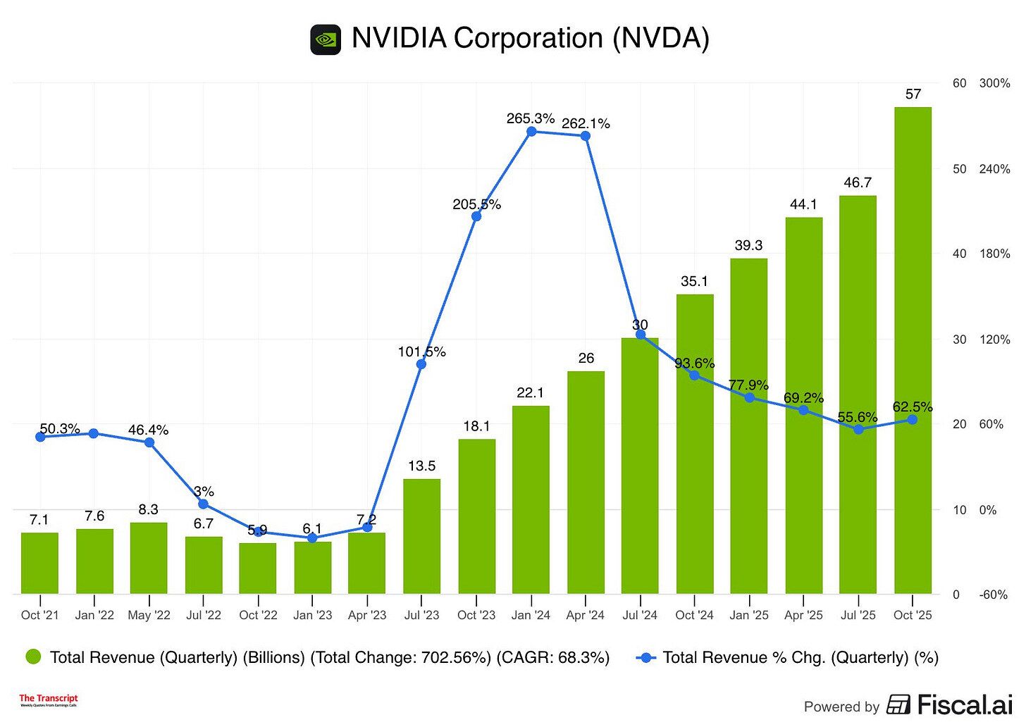 Si lo extrapolamos: los hyperscalers estarían invirtiendo ~140.000 M$/trimestre en infraestructura IA o ~560.000 M$ anualizados. (El gasto en GPUs de Nvidia suele representar aprox. un 40–45% del gasto total en infraestructura de IA)
