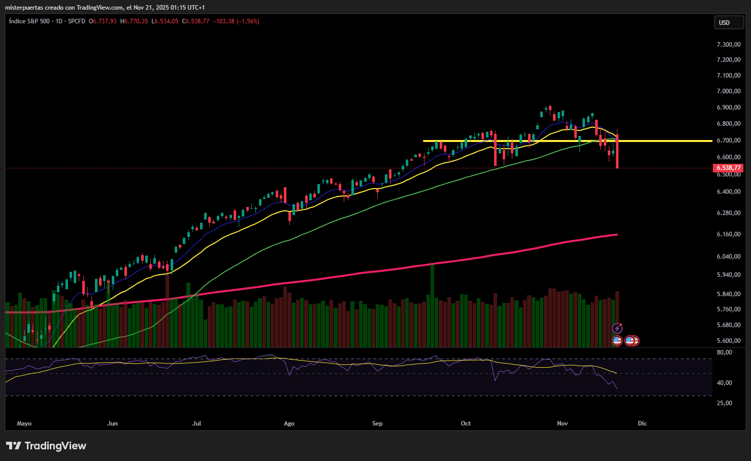 Parecía ser la sesión que diera inicio al rally alcista de final de año, pero para ello, como mínimo, se tenían que recuperar los niveles más importantes (entorno a 6750 en SPX). Fue llegar a ellos y todo se giró. No busquen un motivo específico: verdaderamente no lo hubo.