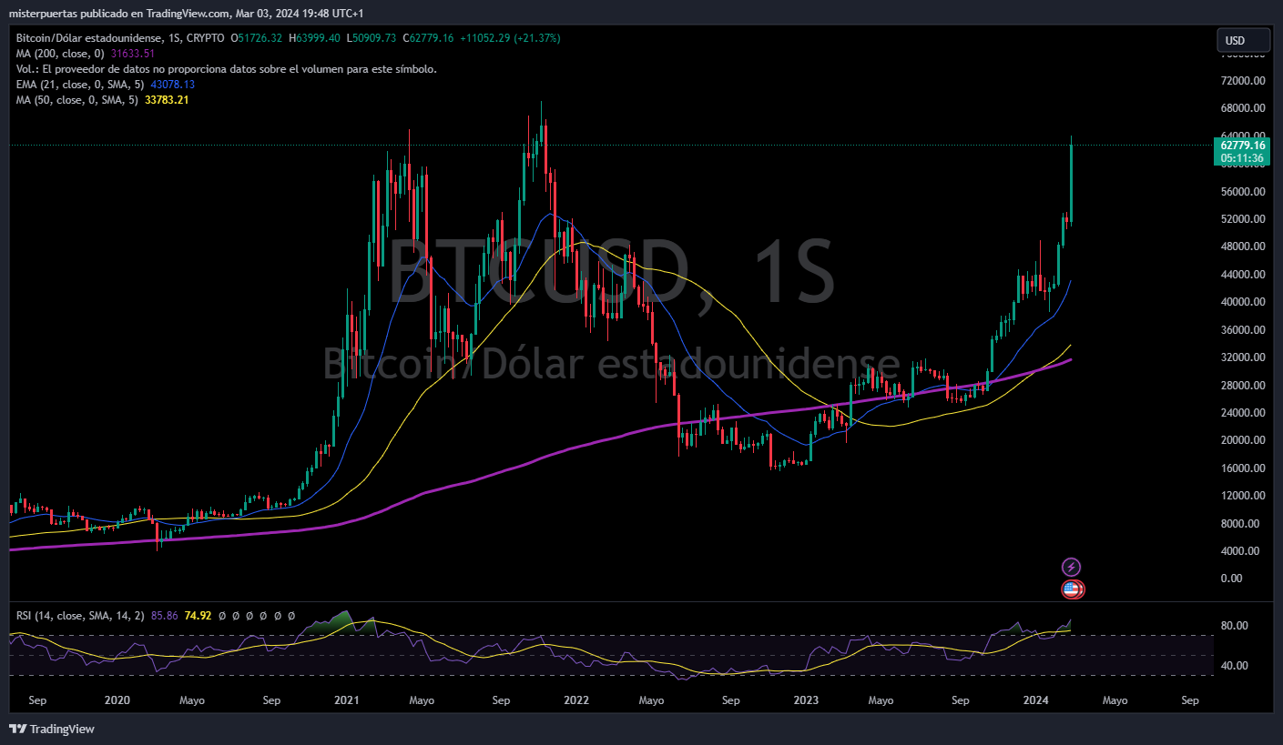 Mientras que los valores que superan la media de 200 sesiones se mantiene en el 72%, aun muy por debajo del % alcanzando a finales de 2021: