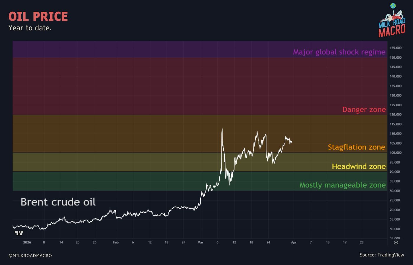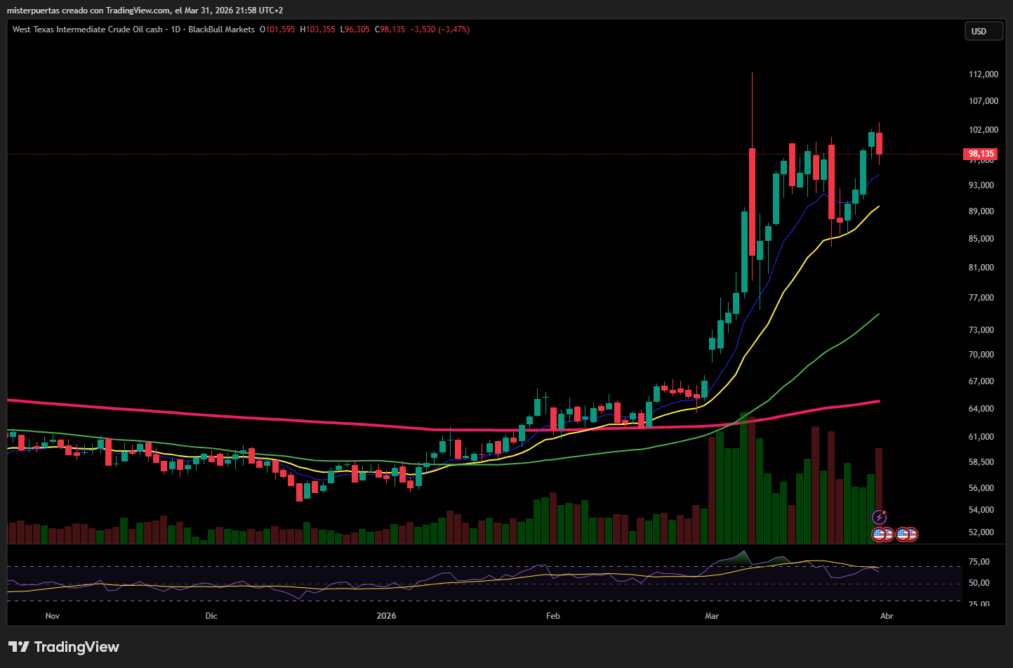 Y los precios del petróleo crudo continúan subiendo gradualmente, situándose ahora en la "zona de estanflación" (entre 100 y 120 dólares).