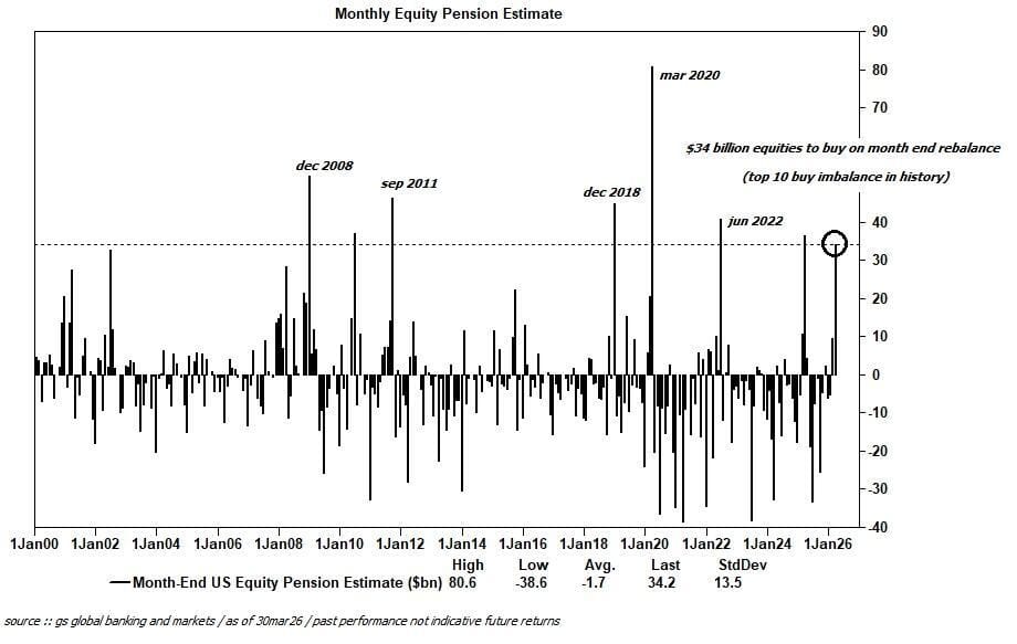 Los fondos de pensiones estadounidenses prevén la compra de 34.000 millones de dólares en acciones estadounidenses antes de que finalice el mes.