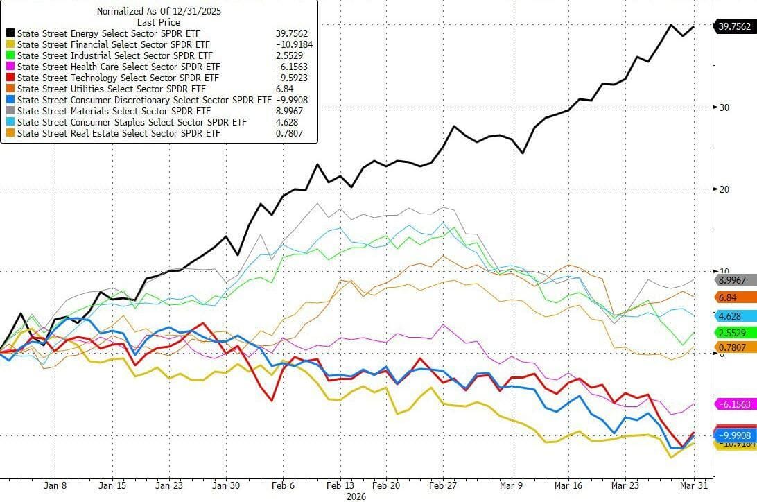 El sector energético dominó los resultados del primer trimestre, mientras que los sectores tecnológico y financiero se quedaron rezagados.