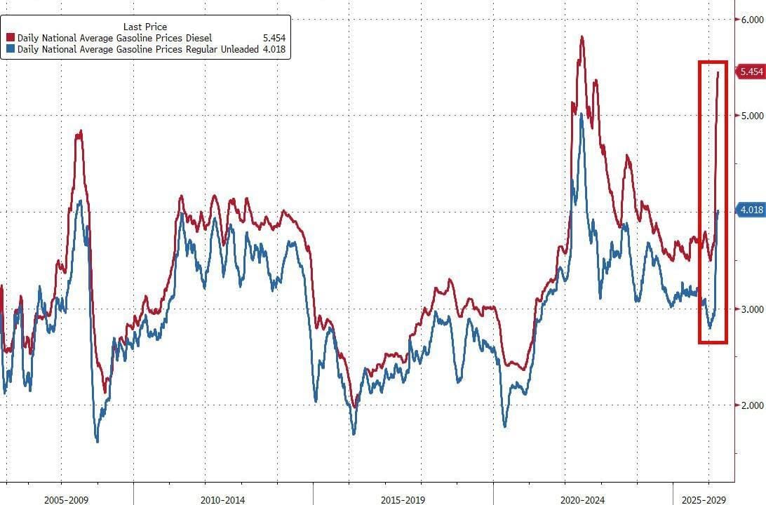 La gasolina en EE. UU. ha superado los 4 dólares por galón por primera vez desde 2022, subiendo más de 1 dólar en un mes a medida que la guerra con Irán altera el suministro global de petróleo.