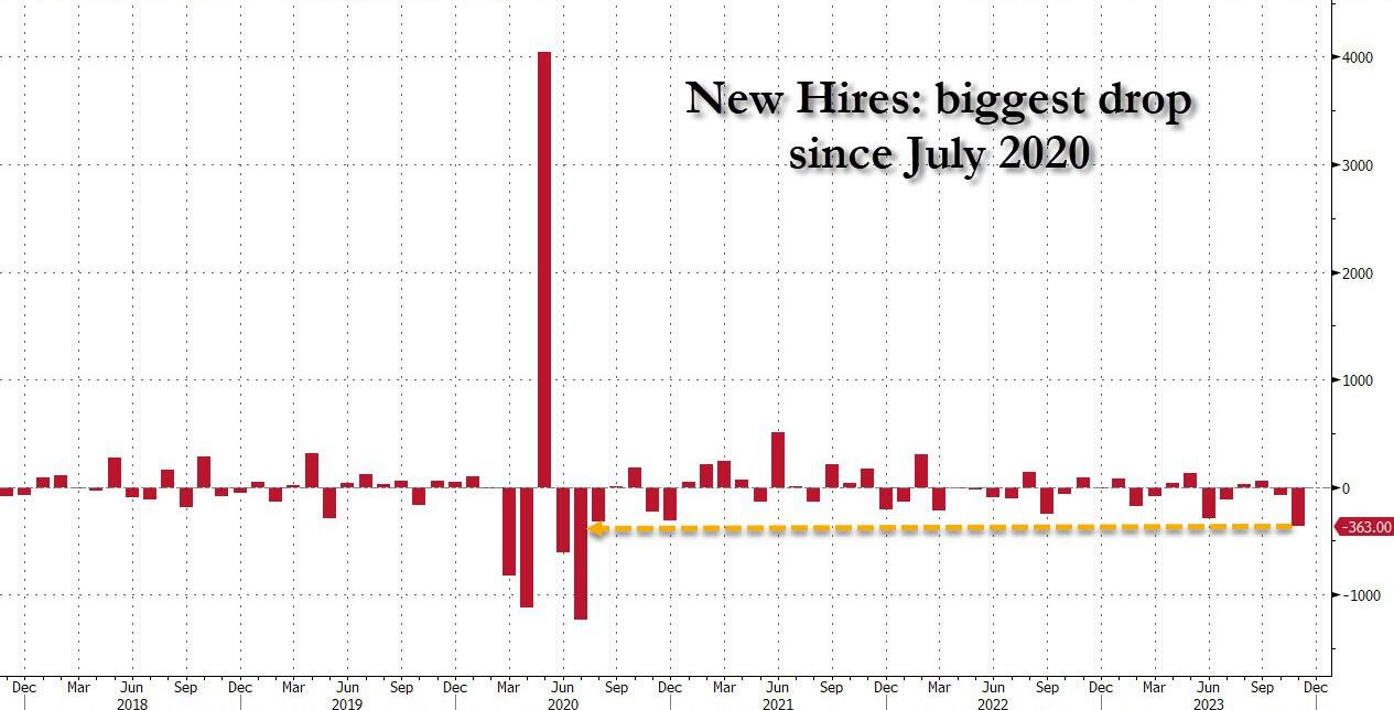 El número de contrataciones en servicios profesionales y empresariales cayó en la friolera de 163.000. ¡En términos mensuales totales, la caída de 363.000 fue la mayor desde julio de 2020!