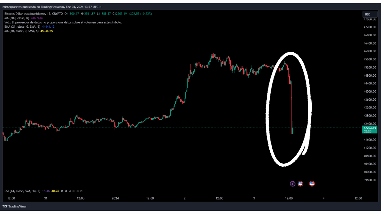 Según su pronóstico, los precios de Bitcoin podrían caer un -20%, ubicándose entre 36.000 y 38.000 dólares. Ruido que ha provocado una caída de hasta el 10% en pocos minutos.
