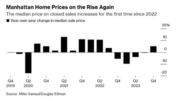 7- Los precios de las viviendas en Manhattan aumentaron por primera vez en más de un año, ya que las ventas de alto nivel impulsaron el mercado y las tasas hipotecarias más bajas prepararon el escenario para una recuperación más amplia en 2024. Fue el primer aumento anual desde el tercer trimestre de 2022, según los datos de las empresas. BBG