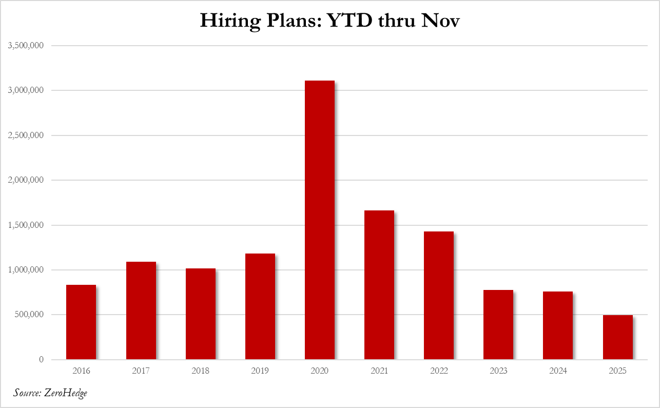 “Los planes de despidos cayeron el mes pasado, sin duda una señal positiva. Dicho esto, los recortes de noviembre han superado las 70.000 salidas solo dos veces desde 2008: en 2022 y en 2008”.