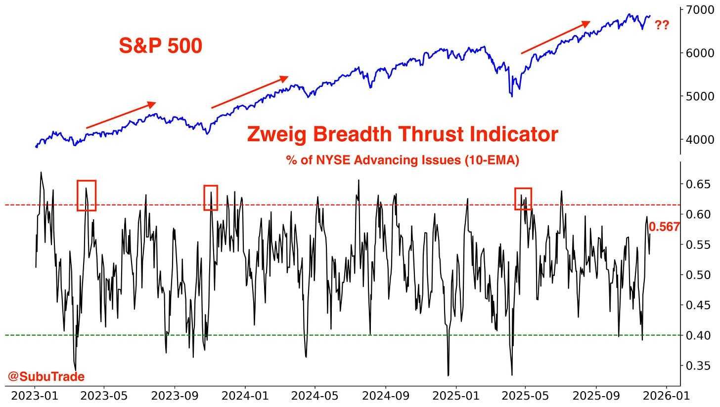 Necesita superar 0,615 antes del viernes para activar oficialmente un Zweig Breadth Thrust.