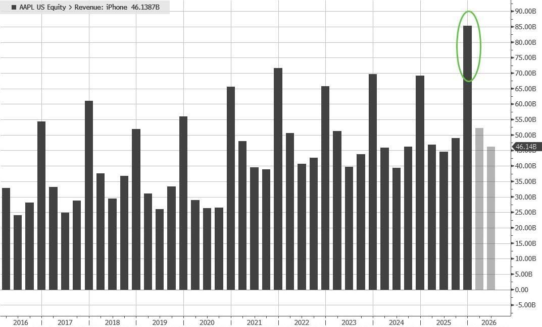 Ingresos del iPhone: 85.270 millones de dólares, un 23 % más que el año anterior, superando la estimación de 78.310 millones de dólares.