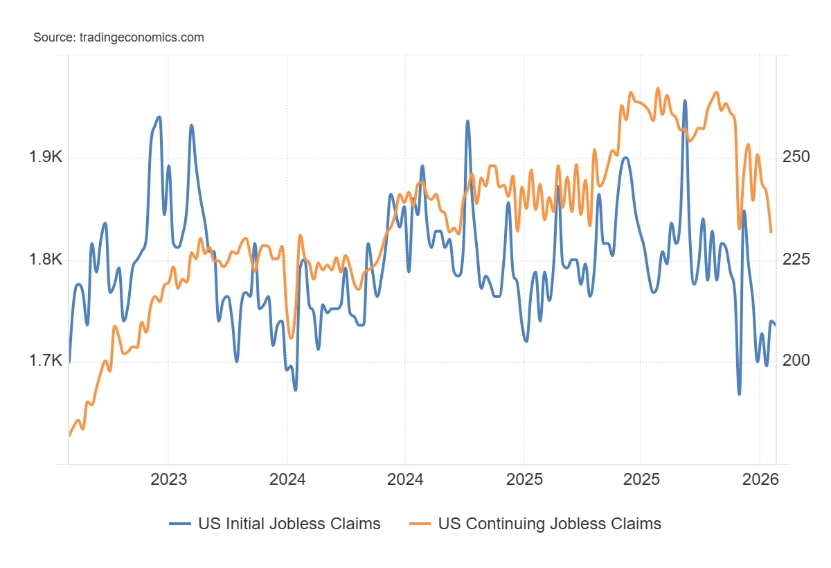 Por su parte, las solicitudes continuadas cayeron en 38.000 hasta 1.827.000, claramente por debajo de las expectativas (1.860.000), marcando el nivel más bajo de desempleo persistente desde septiembre de 2024.
