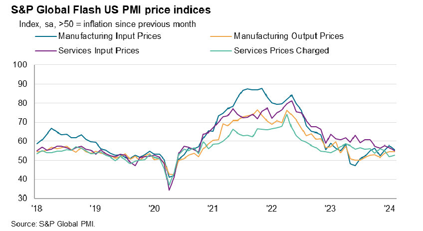 IMPORTANTE: Las métricas de precios en el S&P Global US PMI siguen tendiendo a la baja, aumentaron al ritmo más débil desde octubre de 2020.