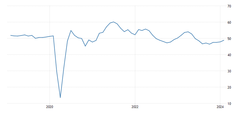 PMI compuesto Eurozona febrero: 48,9 (est 48,4; prev 47,9)