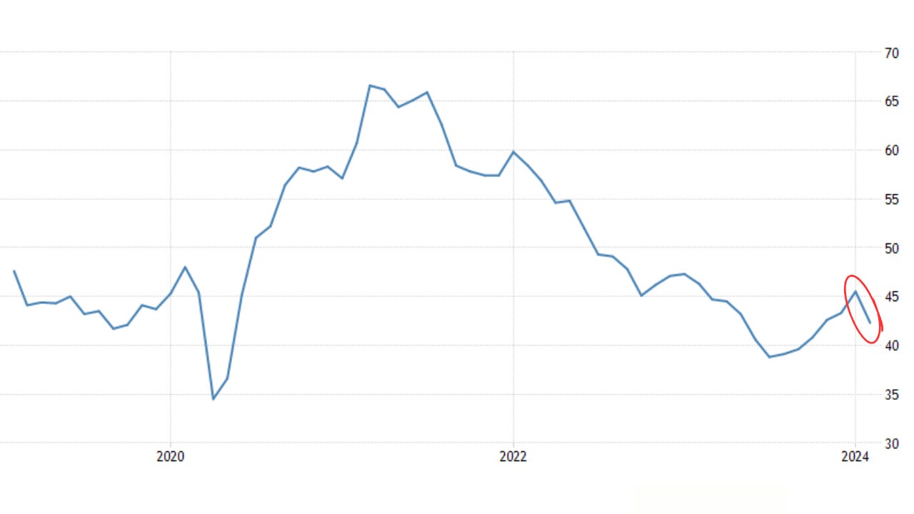 Las previsiones de PMI del mes de febrero en la eurozona, van en linea con ese posible suelo que se viene hablando meses.... Excepto en la manufactura, concretamente en ALEMANIA: