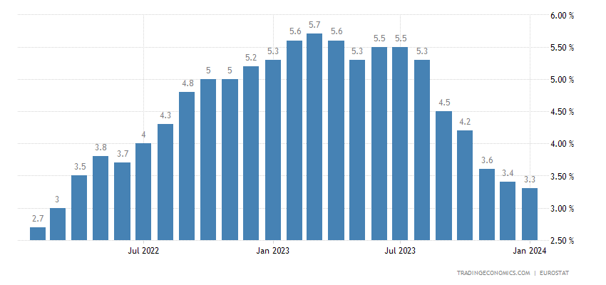 La tasa de inflación de la zona euro se confirmó en el 2,8% en enero de 2024, con pocos cambios respecto al 2,9% de diciembre.