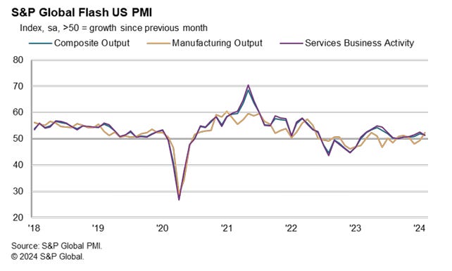 Se trata del mejor PMI manufacturero desde septiembre de 2022 y el PMI de servicios más débil desde noviembre de 2023