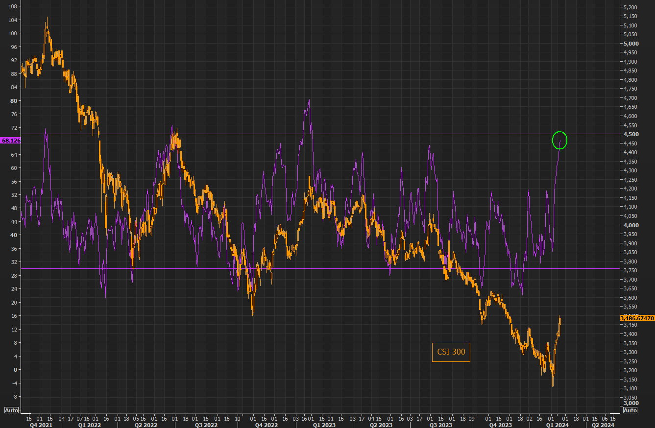 1- El CSI 300 cotiza en los niveles más sobrecomprados desde principios de 2023... y el índice sigue en niveles bastante débiles...