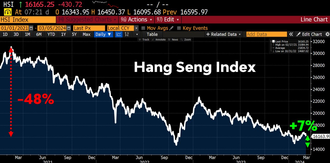 El ambicioso objetivo de crecimiento económico de China para 2024 de alrededor del 5% no cumplió con las expectativas de algunos inversores en cuanto a medidas de estímulo. El sector de recursos básicos cayó un 0,9% hasta un mínimo de cuatro meses.