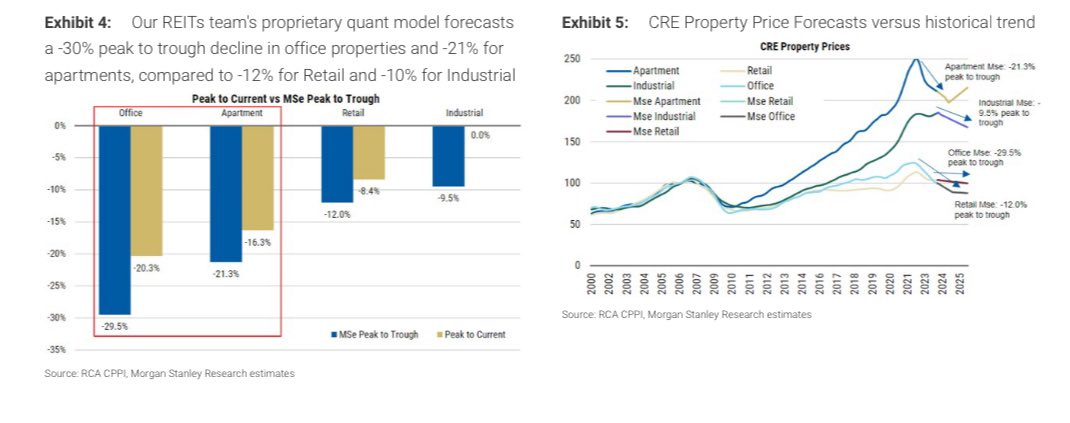 2- MORGAN STANLEY: "... Vemos más bajadas en los precios del CRE, lo que podría seguir presionando los múltiplos de los valores bancarios de mediana capitalización"